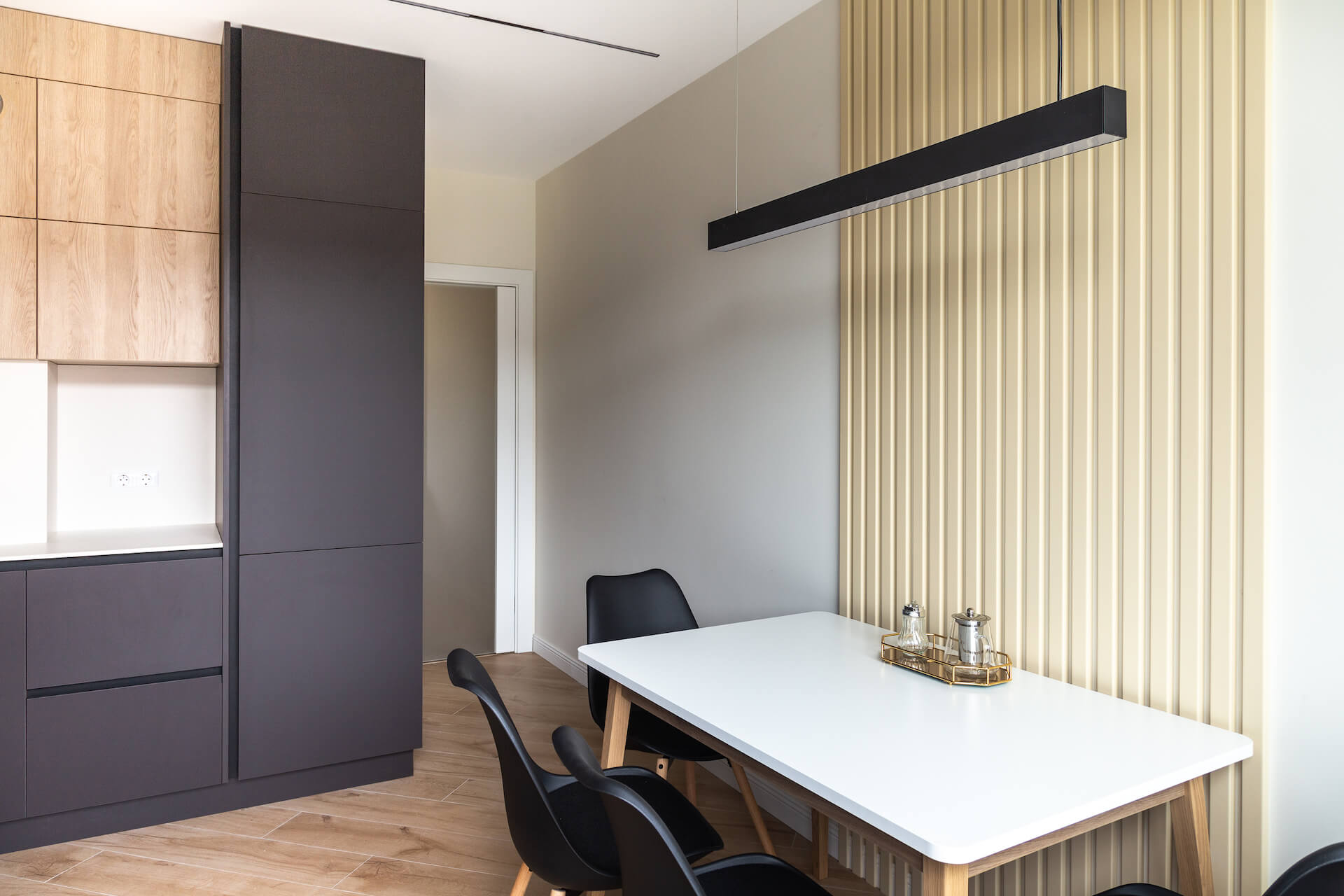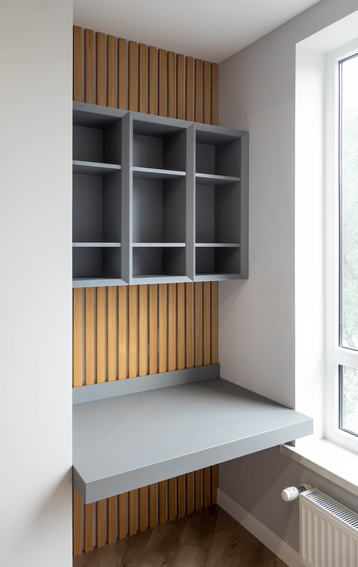 Натуральные материалы. Шпон и МДФ создают тёплую тактильность, которую невозможно добиться с помощью имитаций.